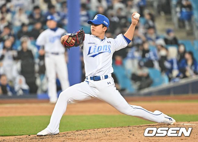 23일 대구삼성라이온즈파크에서 2026 신한 SOL KBO 리그 시범경기 삼성 라이온즈와 KIA 타이거즈의 경기가 열렸다. 홈팀 삼성은 양창섭이, 방문팀 KIA는 양현종이 선발 출전했다. 삼성 라이온즈 이승민이 역투하고 있다. 2026.03.23 / foto0307@osen.co.kr