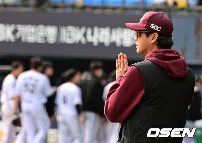 프로야구키움 히어로즈가 LG 트윈스에 2연승을 거두며 시범경기를 마쳤다. 키움은 24일 서울 잠실구장에서 열린 2026 KBO리그 시범경기 최종전 LG와 경기에서 5-2로 승리했다. 키움과 LG는 나란히 5승 1무 6패로 시범경기를 마쳤다. 경기를 마치고 키움 설종진 감독이 선수단에 박수를 치며 승리를 기뻐하고 있다. 2026.03.24/ jpnews@os
