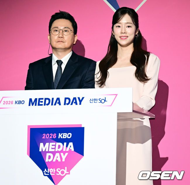 2026 신한 SOL KBO 리그 미디어데이&팬페스트 행사가 26일 서울 송파구 롯데호텔 월드에서 열렸다. 2026 KBO 리그 정규 시즌은 오는 28일 인천(KIA-SSG), 잠실(LG-KT), 대구(삼성-롯데), 창원(NC-두산), 대전(한화-키움) 등 5개 구장에서 개막한다. 김민수 캐스터, 노윤주 아나운서가 사회를 준비하고 있다. 2026.03.26