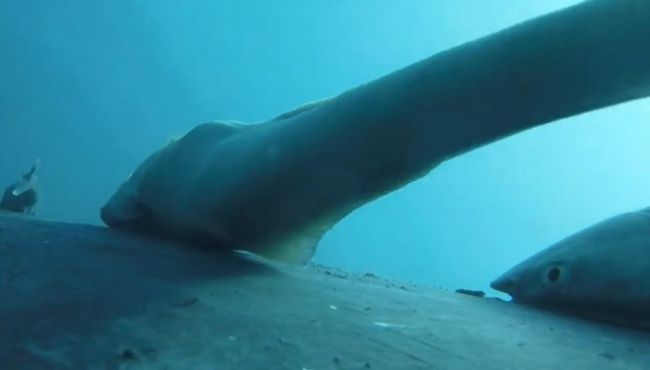 [서울신문 나우뉴스] 빨판상어가 혹등고래에 붙어있는 모습. Olaf Meynecke 제공 ‘바다의 무임 승차객’이라 불리는 빨판상어가 거대한 혹등고래를 타고 다니는 흥미로운 모습이 카메라에 포착됐다. 8일(현지시간) AP통신 등 외신은 빨판상어가 ‘고래 서핑’을 하는 희귀 영상이 촬영됐다고 보도했다. 빨판상어가 혹등고래에 붙어있는 영상의 일부. Olaf M