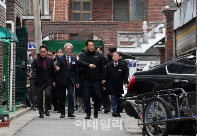 오세훈 서울시장이 10일 오후 영등포구 대림1구역 신속통합기획 재개발 추진 지구를 방문해 현장을 둘러보고 있다. 주거환경개선 대림1구역은 상습 침수 취약지로 서울시는 주택공급과 재난예방을 동시에 잡는 맞춤형 재개발을 추진한다고 밝혔다. 오 시장은 “주민들의 어려움이 빠르고 정확하게 해결하도록 현장의 목소리를 가까이에서 듣고 개선이 필요하다면 정부에 분명히