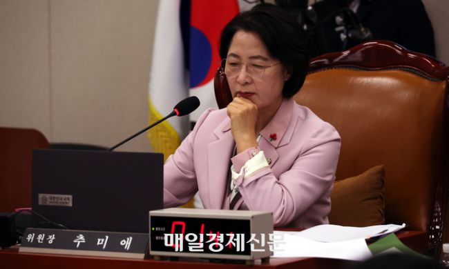 10일 국회에서 열린 법제사법위원회 전체회의에서 더불어민주당 소속 추미애 위원장이 자료를 살피고 있다. 2025.12.10.김재훈기자 [ⓒ 매일경제 & mk.co.kr, 무단 전재, 재배포 및 AI학습 이용 금지]