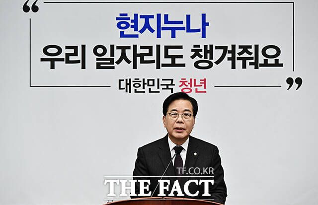 송언석 국민의힘 원내대표가 11일 오후 서울 여의도 국회에서 열린 의원총회에 참석해 모두발언을 하고 있다. /국회=배정한 기자 송언석 국민의힘 원내대표가 11일 오후 서울 여의도 국회에서 열린 의원총회에 참석해 모두발언을 하고 있다. 송 원내대표는 이날 의원총회에서 "반헌법적·반민주적인 8대 악법에 대한 연내 강행처리 시도를 철회하지 않으면 본회의에서 모든