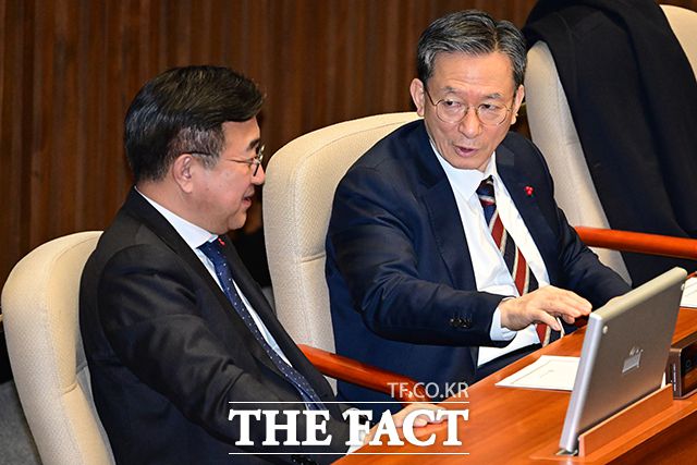 행안부와 법무부 장관을 각각 맡고 있는 윤호중(왼쪽), 정성호 더불어민주당 의원이 23일 오전 서울 여의도 국회 본회의장에서 대화하고 있다. ilty012@tf.co.kr 사진영상기획부 photo@tf.co.kr 발로 뛰는 더팩트는 24시간 여러분의 제보를 기다립니다. ▶카카오톡: '더팩트제보' 검색 ▶이메일: jebo@tf.co.kr ▶뉴스 홈페이지: h