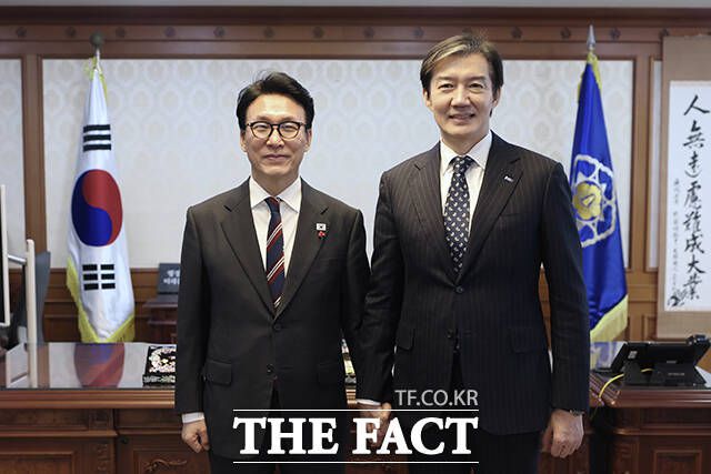 김민석 국무총리(왼쪽)가 5일 오전 서울 종로구 정부서울청사에서 조국 조국혁신당 대표와 면담에 앞서 기념사진을 찍고 있다. <사진=국무총리실> darkroom@tf.co.kr 사진영상기획부 photo@tf.co.kr 발로 뛰는 더팩트는 24시간 여러분의 제보를 기다립니다. ▶카카오톡: '더팩트제보' 검색 ▶이메일: jebo@tf.co.kr ▶뉴스 홈페이지: