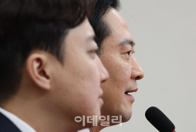 장동혁 국민의힘 대표와 이준석 개혁신당 대표가 13일 오전 서울 여의도 국회에서 ‘통일교·공천헌금 특검 연대' 관련 회동을 하고 있다.