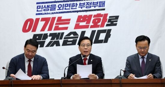 송언석 국민의힘 원내대표가 13일 국회에서 열린 원내대책회의에서 발언하고 있다. <ⓒ투자가를 위한 경제콘텐츠 플랫폼, 아시아경제(www.asiae.co.kr) 무단전재 배포금지>