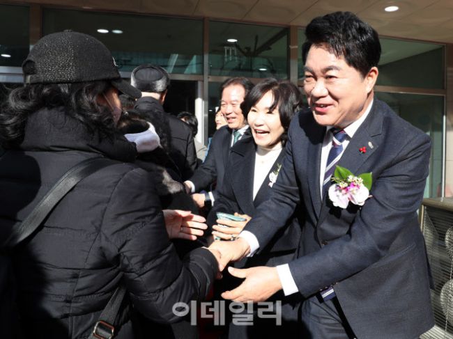 박준희(오른쪽) 관악구청장이 13일 오후 관악아트홀에서 열린 '2026년 관악구 신년인사회'에서 참석자들과 인사를 나누고 있다. 이날 행사는 박 구청장을 비롯해 국회의원, 시·구의원, 유관기관과 구민 2천여 명이 참석해 새해 건강과 안녕을 함께 기원했다. 박준희 구청장은 이날 새해인사와 함께 맞춤형 복지 강화, AI 기본사회 구현, 힐링 정원 도시 조성,
