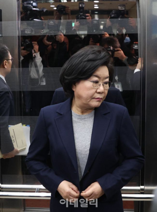 이혜훈 기획예산처 장관 후보자가 23일 오전 서울 여의도 국회에서 열린 재정경제기획위원회 인사청문회에 출석하기 위해 승강기를 타고 있다.