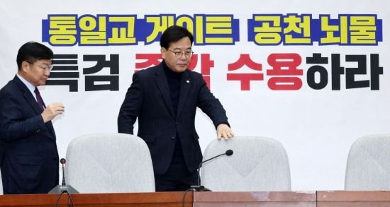 송언석 국민의힘 원내대표가 27일 국회에서 열린 원내대책회의에 참석하고 있다. <ⓒ투자가를 위한 경제콘텐츠 플랫폼, 아시아경제(www.asiae.co.kr) 무단전재 배포금지>