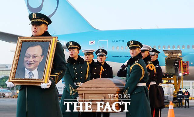 고국으로 돌아온 고 이해찬…김민석·우원식·정청래 영접, '침통한 정계' [TF사진관]