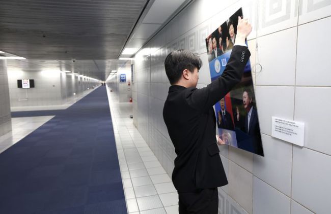 국회, 지하통로 윤석열 전 대통령 사진 철거