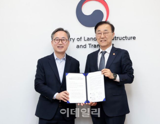 유성훈(왼쪽) 금천구청장이 3일 서울 국토발전전시관에서 김윤덕 국토교통부 장관과 면담을 갖고 ‘신천~신림선 광역철도’ 사업의 제5차 국가철도망 구축계획 반영을 공식 요청했다. 이날 유성훈 금천구청장은 박준희 관악구청장, 박승원 광명시장, 임병택 시흥시장과 함께 ‘신천~신림선 제5차 국가철도망 구축계획 반영 및 조기 추진 촉구 공동 건의문’을 전달했다. 유