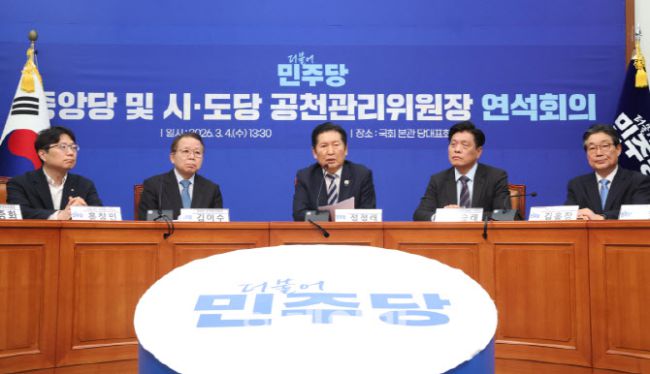 정청래 더불어민주당 대표가 4일 서울 여의도 국회에서 열린 중앙당 및 시·도당 공천관리위원장 연석회의에서 모두발언을 하고 있다.