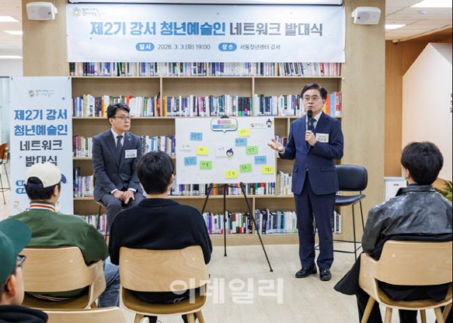 진교훈 강서구청장이 3일 서울청년센터 강서에서 열린 ‘제2기 강서 청년예술인 네트워크 발대식’에서 청년들과 소통하고 있다. 청년예술인 네트워크는 강서구에 거주하거나 직장을 다니는 19세부터 39세까지의 청년으로 구성된 청년기구다. 앞으로 1년간 ▲미디어아트, 사진 등 전시회 운영 ▲공예, 페이스페인팅 체험프로그램 운영 등 다양한 활동을 하게 된다. 강서구는