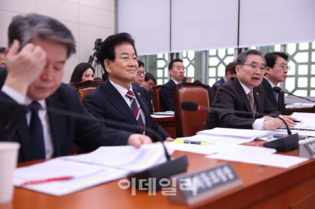 조현(오른쪽 두번째) 외교부 장관이 6일 서울 여의도 국회에서 열린 외교통일위원회 전체회의에 출석, 질의에 답변하고 있다.