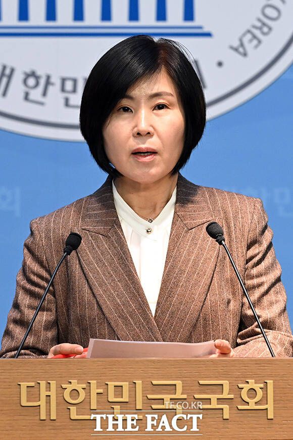 국회 보건복지위원회 야당 간사를 맡고 있는 김미애 국민의힘 의원이 11일 오후 서울 여의도 국회 소통관에서 기자회견을 열고 발언을 하고 있다. 이날 김미애 간사와 국민의힘 보건복지위원회 위원들은 지난 10일 있었던 보건복지위원회 코로나 백신 관련 현안 질의와 관련해 "정은경 장관은 백신 관리 미흡, 매뉴얼 미준수에 대해 사과했지만 본인 거취에 대해서는 입장
