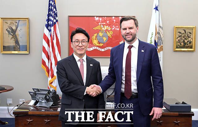 방미중인 김민석 국무총리(왼쪽)가 12일 오후(현지시간) 미국 워싱턴 D.C 백악관에서 열린 밴스 부통령과 회담에 앞서 기념촬영을 하고 있다. /주미한국대사관 방미중인 김민석 국무총리(왼쪽)가 12일 오후(현지시간) 미국 워싱턴 D.C 백악관에서 열린 밴스 부통령과 회담에 앞서 기념촬영을 하고 있다. 미국을 방문 중인 김민석 국무총리는 워싱턴 D.C. 백악