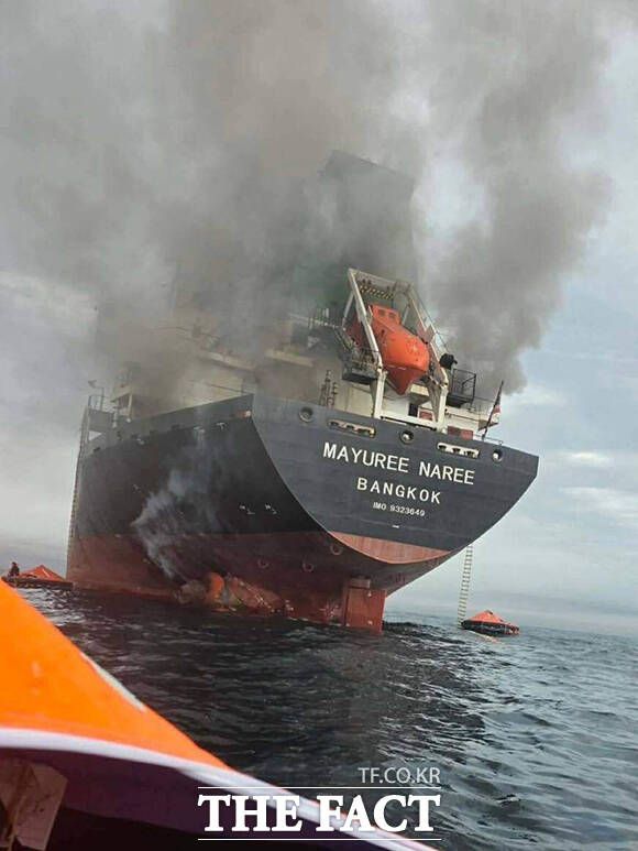 11일(현지시간) 호르무즈 해협에서 이란의 공격을 받은 태국 벌크선 ‘마유리 나리’호의 모습. /태국 왕립 해군·AP 미국 중부사령부가 10일(현지시간) 호르무즈해협 인근에서 이란 기뢰부설선과 해군 함정 여러 척을 격침했다고 밝혔다. /미 중부사령부 SNS 미국·이스라엘과 이란 간 전쟁이 이어지는 가운데 이란이 호르무즈 해협에서 태국과 일본 등 선박을 타격