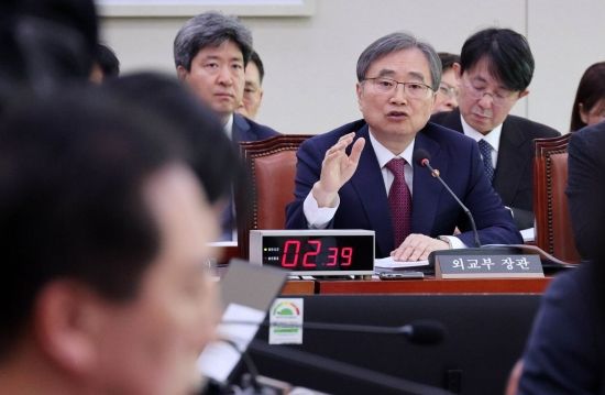 조현 외교부 장관이 17일 국회에서 열린 외교통일위원회 전체회의에서 의원 질의에 답변하고 있다. <ⓒ투자가를 위한 경제콘텐츠 플랫폼, 아시아경제(www.asiae.co.kr) 무단전재 배포금지>