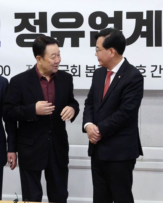 송언석 국민의힘 원내대표가 19일 국회에서 열린 중동사태 관련 정유업계 대표와의 정책간담회에서 박주선 대한석유협회장과 대화하고 있다. <ⓒ투자가를 위한 경제콘텐츠 플랫폼, 아시아경제(www.asiae.co.kr) 무단전재 배포금지>