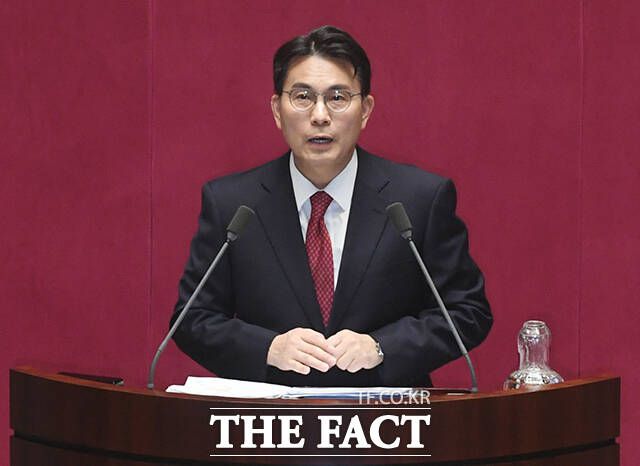 윤상현 국민의힘 의원이 19일 오후 서울 여의도 국회에서 열린 제433회 국회(임시회) 제2차 본회의에 참석해 공소청법에 대한 무제한 토론(필리버스터)를 하고 있다. /국회=박상민 기자 필리버스터 첫 주자로 나선 윤상현 국민의힘 의원. 윤상현 국민의힘 의원이 19일 오후 서울 여의도 국회에서 열린 제433회 국회(임시회) 제2차 본회의에 참석해 공소청법에