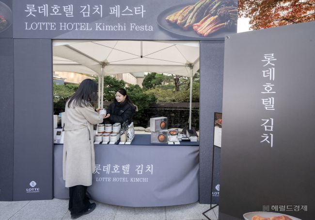 롯데호텔앤리조트가 21일 오후 서울 중구 롯데호텔 서울 코스모노지 광장에서 ‘롯데호텔 김치 페스타’를 진행하고 있다. 이번 행사는 ‘김치의 날(11월 22일)’을 맞아 우리나라 고유의 전통식품인 김치의 가치를 알리고, 더 많은 고객에게 롯데호텔 김치를 직접 경험할 수 있는 기회를 제공하고자 마련됐다. 롯데호텔 김치 페스타는 오전 11시부터 오후 6시까지 운