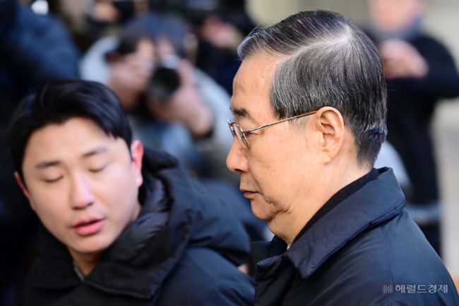 [헤럴드pic] 1심 선고 공판에 출석하는 한덕수 전 국무총리
