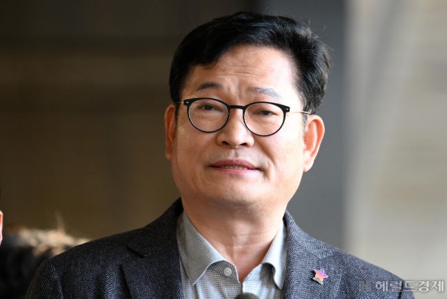 더불어민주당 전당대회 돈 봉투 살포 의혹의 '정점'으로 지목된 송영길 전 대표가 8일 오전 검찰 조사를 받기 위해 서울 서초구 서울중앙지검에 출석하며 기자들의 질문에 답하고 있다. babtong@heraldcorp.com Copyright ⓒ 헤럴드경제 All Rights Reserved.