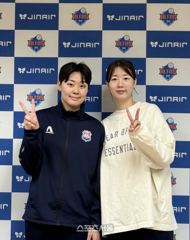 한국도로공사 강소휘(왼쪽)와 김다은이 28일 화성종합경기타운체육관에서 기업은행을 이긴 뒤 사진 촬영에 임하고 있다.화성 | 정다워 기자 2년 차 세터 김다은(한국도로공사)은 성장통을 겪고 있다. 김다은은 지난시즌 혜성같이 등장한 대형 유망주다. 1년 차에 한국도로공사 주전을 꿰찬 그는 힘과 스피드 있는 토스, 과감한 운영으로 주목받았다. 나이에 어울리지 않