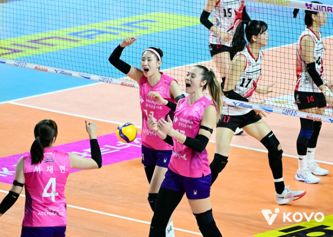 득점 후 환호하는 흥국생명 레베카.제공 | 한국배구연맹 김수지가 흥국생명에서 다시 만난 외국인 선수 레베카를 칭찬했다. 레베카는 16일 인천 삼산월드체육관에서 열린 정관장과의 진에어 2025~2026 V리그 여자부 2라운드 경기에서 양 팀 통틀어 가장 많은 21득점을 책임지며 팀의 세트스코어 3-0 완승을 이끌었다. 레베카의 활약 속 흥국생명은 3점을 챙기
