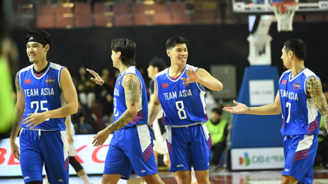 팀아시아, 팀루키 상대로 82-79 승리 윌리엄 나바로 22점 4리바운드 5어시스트 맹활약 알빈 톨렌티노도 19점으로 존재감 팀아시아 선수들이 17일 서울 잠실실내체육관에서 열린 2025~2026 LG전자 프로농구 올스타전 전야제 경기에서 하이파이브를 하고 있다. 사진 | KBL 올스타전 전야제에서 열린 팀아시아와 팀루키의 대결. 역사적인 첫 번째 맞대결