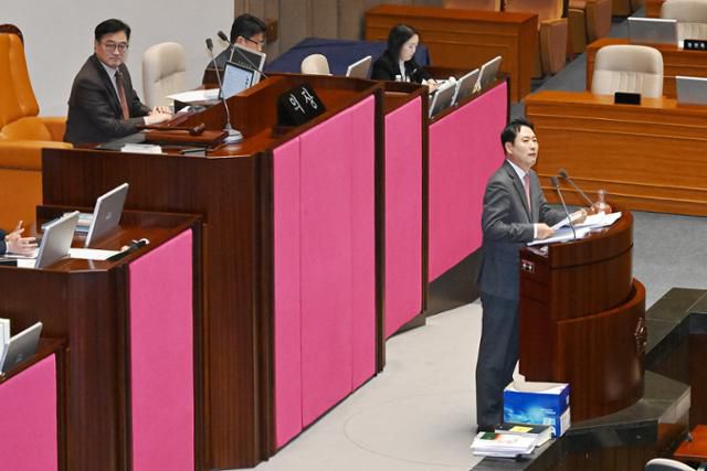 장동혁 국민의힘 대표가 22일 국회 본회의에서 더불어민주당이 주도해 상정한 내란전담재판부 설치법에 대한 필리버스터(무제한 토론을 통한 합법적 의사진행 방해)를 하고 있다. 장 대표는 성낙인 서울대 법대 명예교수의 '헌법학', 존 스튜어트 밀의 '자유론' 등 책 5권을 지참해 연단에 올라 해당 법안의 위헌성을 주장했다. 야당 대표가 필리버스터에 나선 것은 헌