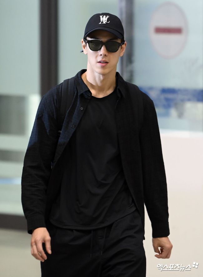 그룹 몬스타엑스가 4일 오후 해외 일정을 마치고 인천국제공항을 통해 입국했다. 몬스타엑스 셔누가 입국장을 나서고 있다. 고아라 기자 iknow@xportsnews.com