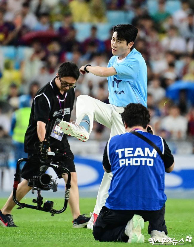 4일 오후 대구스타디움에서 열린 'FC바르셀로나 아시아 투어 에디션' 대구FC와 FC바르셀로나의 경기에 앞서 가수 영탁이 시축을 하고 있다. 박지영 기자 jypark@xportsnews.com