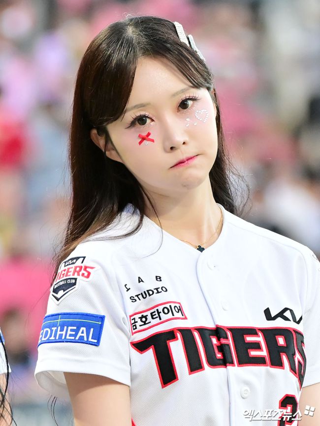10일 오후 광주기아챔피언스필드에서 열린 '2025 신한 SOL Bank KBO리그' 삼성 라이온즈와 KIA 타이거즈의 경기, 정가예 치어리더가 행사 준비를 하고 있다. 김한준 기자 kowel@xportsnews.com