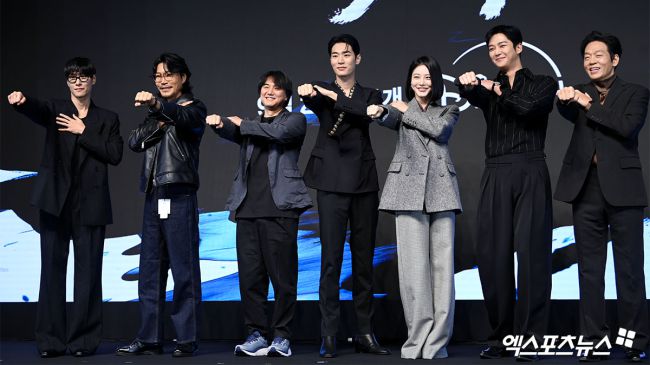 23일 오전 서울 강남구 엘리에나호텔에서 디즈니+ 오리지널 시리즈 '탁류' 제작발표회가 열렸다. 배우 김동원, 최귀화, 추창민 감독, 박서함, 신예은, 로운, 박지환이 포토타임을 하고 있다. ‘탁류’는 조선의 모든 돈과 물자가 모여드는 경강을 둘러싸고 혼탁한 세상을 뒤집고 사람답게 살기 위해 각기 다른 꿈을 꿨던 이들의 운명 개척 액션 드라마다. 고아라 기