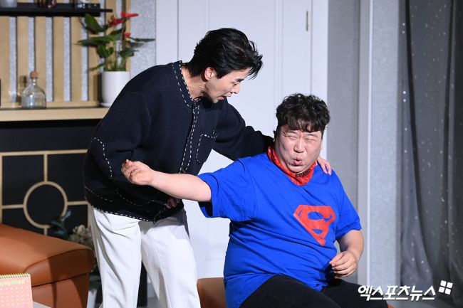 7일 오후 서울 종로구 대학로 스타릿홀에서 연극 '스페셜 보잉보잉' 프레스콜이 열렸다. 배우 박준석, 임연택이 극 중 한 장면을 시연하고 있다. 고아라 기자 iknow@xportsnews.com