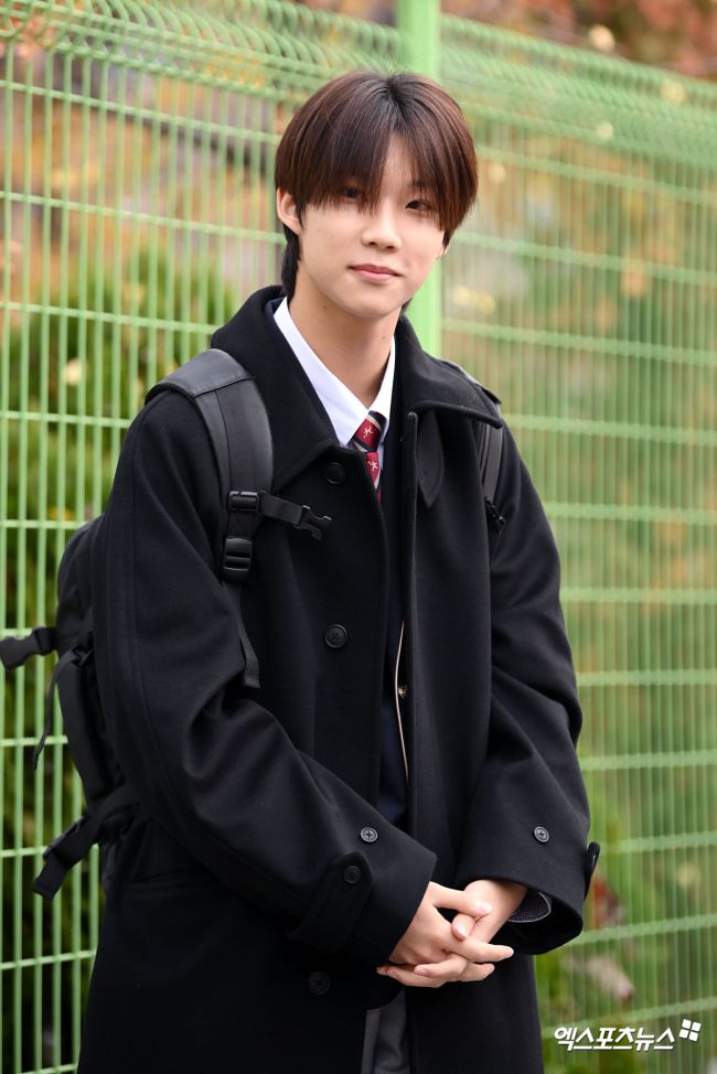 13일 오전 서울 송파구 오금고등학교에서 '2026학년도 대학수학능력시험‘(수능)이 진행됐다. 그룹 더윈드 박하유찬이 수능을 치르기 위해 수험장으로 들어가기 전 취재진을 향해 포즈를 취하고 있다. 고아라 기자 iknow@xportsnews.com