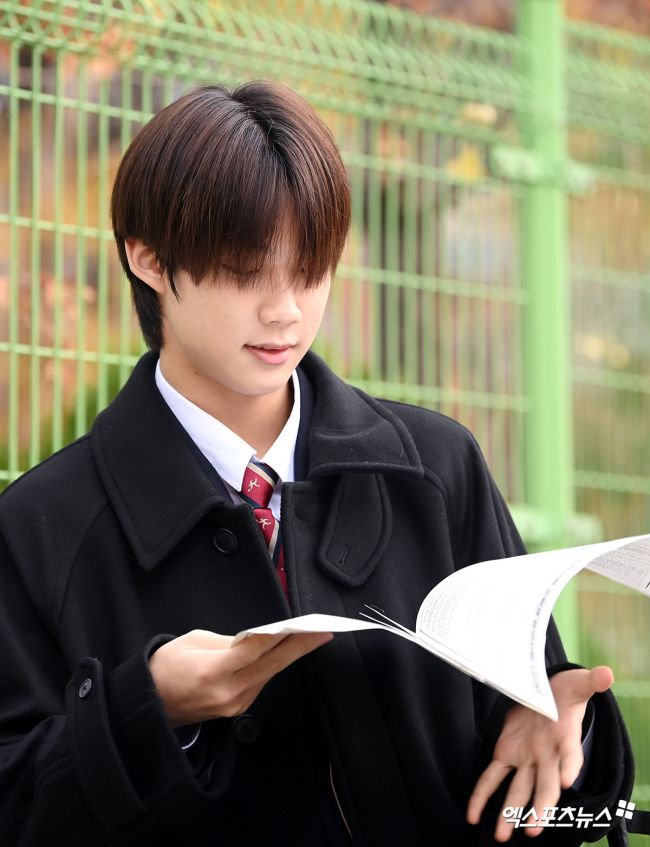 13일 오전 서울 송파구 오금고등학교에서 '2026학년도 대학수학능력시험‘(수능)이 진행됐다. 그룹 더윈드 박하유찬이 수능을 치르기 위해 수험장으로 들어가기 전 취재진을 향해 포즈를 취하고 있다. 고아라 기자 iknow@xportsnews.com