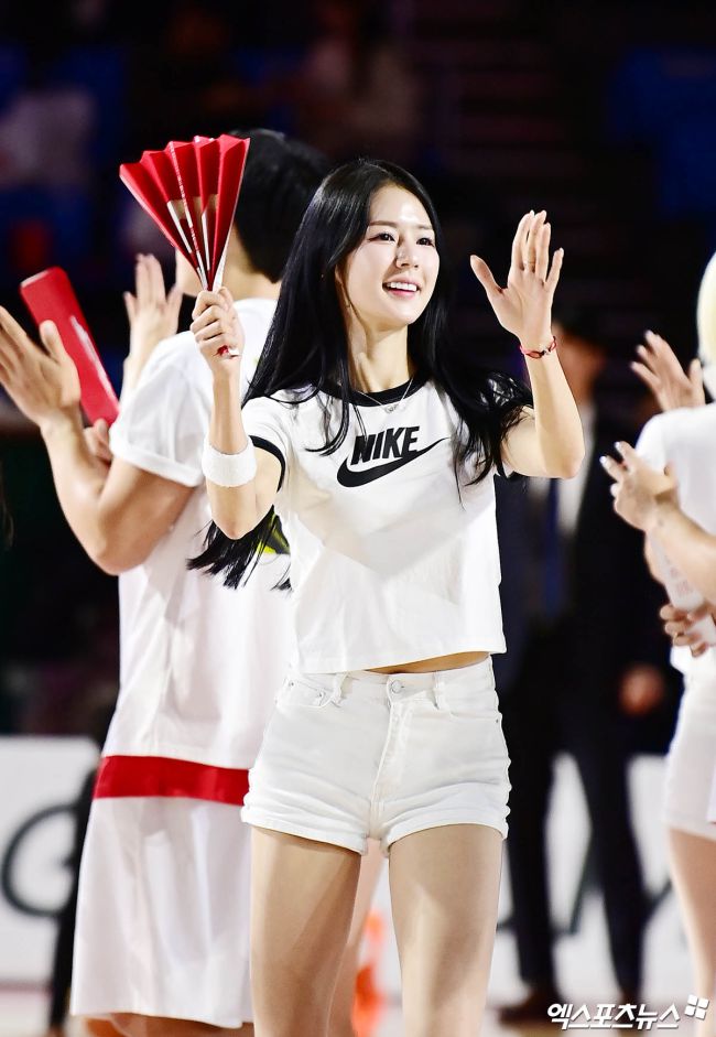 17일 오후 서울 잠실학생체육관에서 열린 '2025-2026 LG전자 프로농구' 서울 SK와 수원 KT의 경기에 앞서 치어리더 박기량이 열띤 응원을 펼치고 있다. 박지영 기자 jypark@xportsnews.com