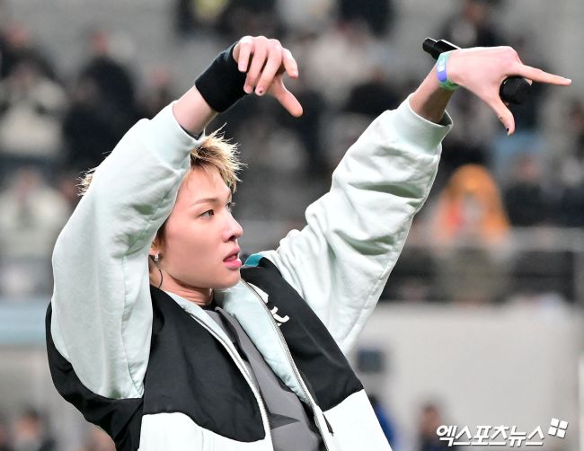 18일 오후 서울월드컵경기장에서 열린 대한민국과 가나의 축구 대표팀 평가전, 대한민국이 이태석의 결승골에 힘입어 가나에 1:0 승리를 거뒀다. 하프타임때 그룹 코르티스 마틴이 멋진 공연을 선보이고 있다. 김한준 기자 kowel@xportsnews.com