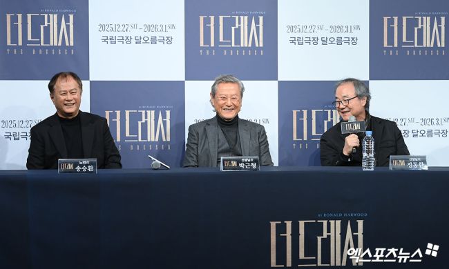 19일 오후 서울 종로구 대학로 예스24 스테이지에서 연극 '더 드레서' 기자간담회가 열렸다. 배우 송승환, 박근형, 정동환이 인사를 하고 있다. 고아라 기자 iknow@xportsnews.com