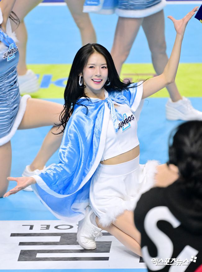19일 오후 인천 계양체육관에서 열린 '진에어 2025-2026 V-리그' 대한항공과 한국전력의 경기, 박기량 치어리더가 멋진 공연을 선보이고 있다. 김한준 기자 kowel@xportsnews.com