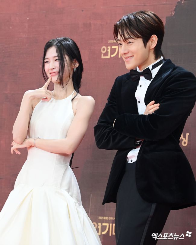 31일 오후 서울 영등포구 KBS신관공개홀에서 ‘2025 KBS 연기대상’ 레드카펫 행사가 진행됐다. 이날 시상식에 참석한 배우 아린, 유정후가 포토타임을 갖고 있다. 고아라 기자 iknow@xportsnews.com
