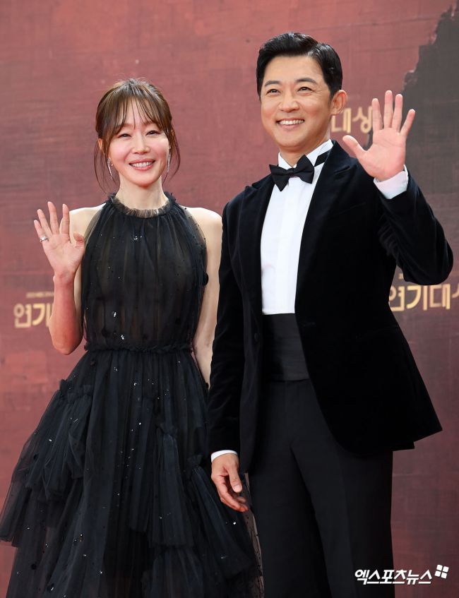 31일 오후 서울 영등포구 KBS신관공개홀에서 ‘2025 KBS 연기대상’ 레드카펫 행사가 진행됐다. 이날 시상식에 참석한 배우 엄지원, 안재욱이 포토타임을 갖고 있다. 고아라 기자 iknow@xportsnews.com