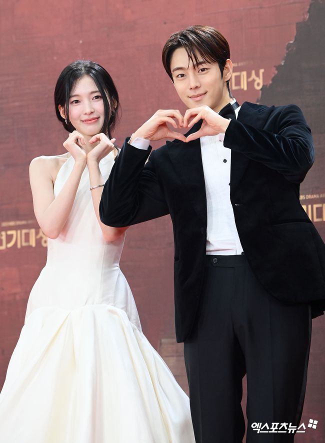 31일 오후 서울 영등포구 KBS신관공개홀에서 ‘2025 KBS 연기대상’ 레드카펫 행사가 진행됐다. 이날 시상식에 참석한 배우 아린, 유정후가 포토타임을 갖고 있다. 고아라 기자 iknow@xportsnews.com