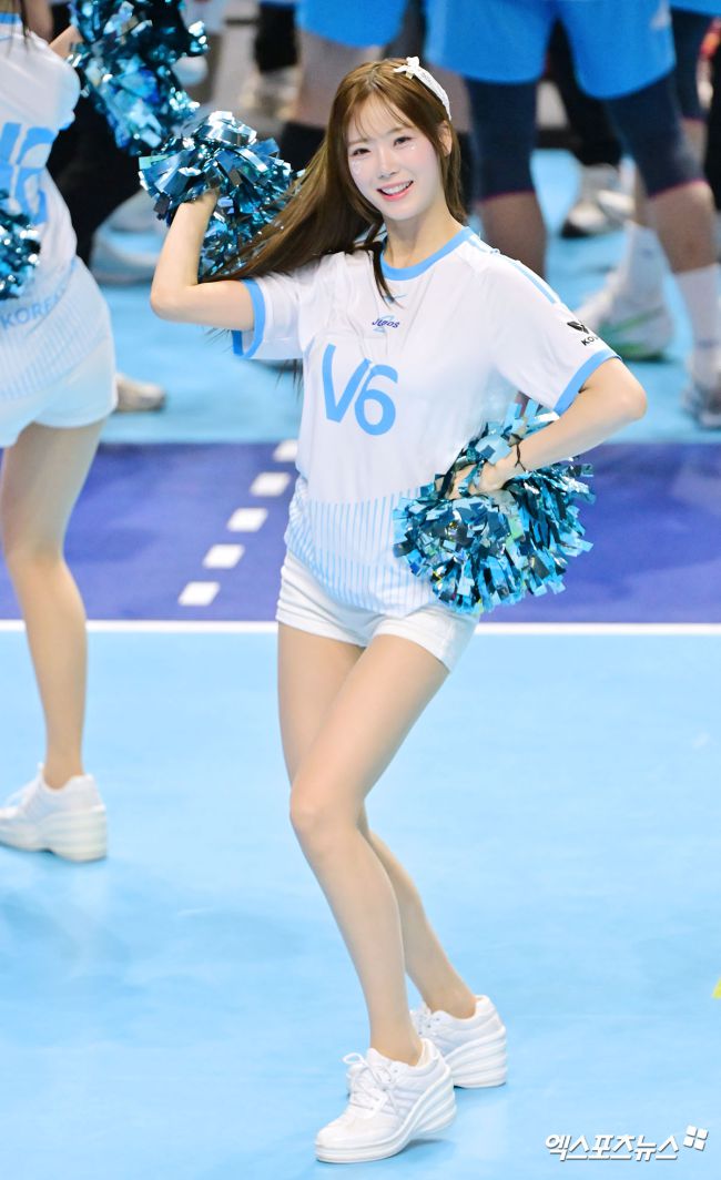 1일 오후 인천 계양체육관에서 열린 '진에어 2025-2026 V-리그' 대한항공과 삼성화재의 경기, 아야카 치어리더가 멋진 공연을 선보이고 있다. 김한준 기자 kowel@xportsnews.com