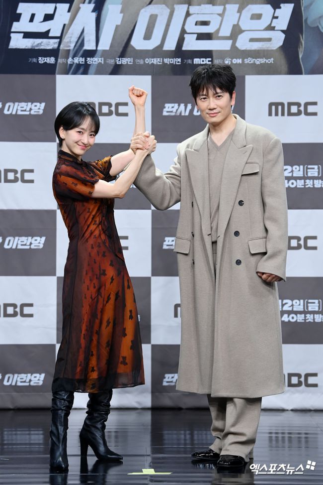 2일 오후 서울 마포구 상암 MBC에서 새 금토드라마 '판사 이한영' 제작발표회가 열렸다. 이날 제작발표회에 참석한 배우 원진아, 지성이 포토타임을 갖고 있다. '판사 이한영'은 거대 로펌의 노예로 살다가 10년 전으로 회귀한 적폐 판사 '이한영'(지성)이 새로운 선택으로 거악을 응징하는 정의 구현 회귀 드라마로 오늘(2일) 첫 방송된다. 고아라 기자 ik
