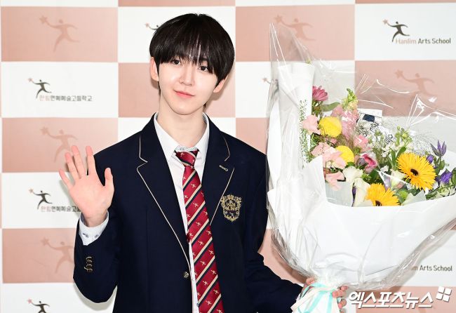 8일 오전 서울 장지동 한림연예예술고등학교에서 '제15회 졸업식'이 열렸다. 이날 한림예고 졸업식에 참석한 킥플립 동현이 포토타임을 갖고 있다. 박지영 기자 jypark@xportsnews.com